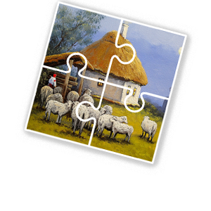 Puzzeln auf verschiedenen Niveaus. Vertraute Themen, die die Fantasie anregen. Es handelt sich um eine vereinfachte Variante, da die Lösung im Hintergrund zu erkennen ist.